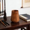 Handmade wooden pen holder with carved floral detailing and a rustic finish, designed for organizing desk or vanity essentials. Suitable for pens, pencils, markers, scissors, makeup brushes, or small tools, and can also be used as a decorative storage cup.